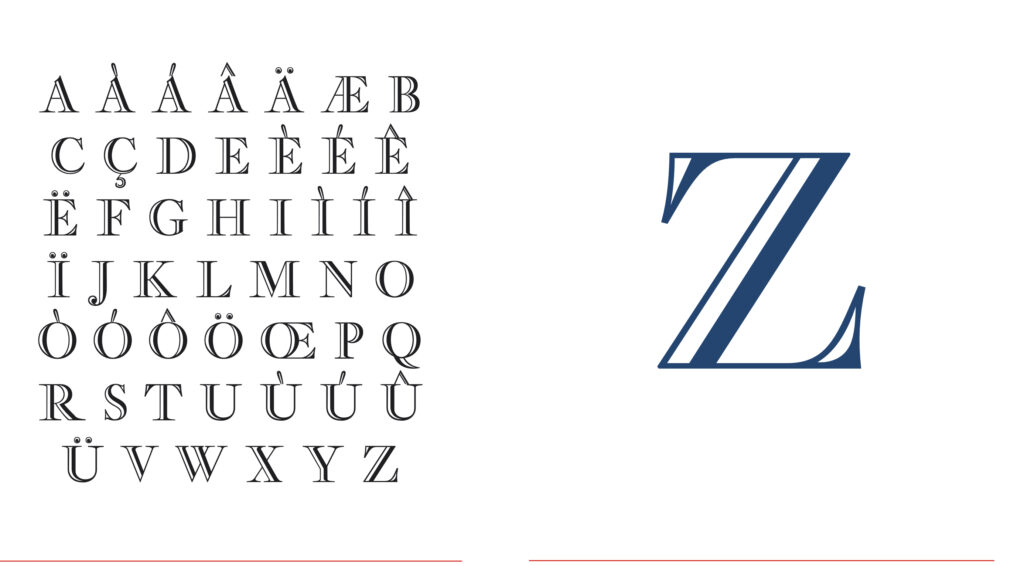 O.a. de schreven van de F en E zijn gewijzigd; de twee buiken van de B zijn meer gelijk; de S is smaller gesneden.