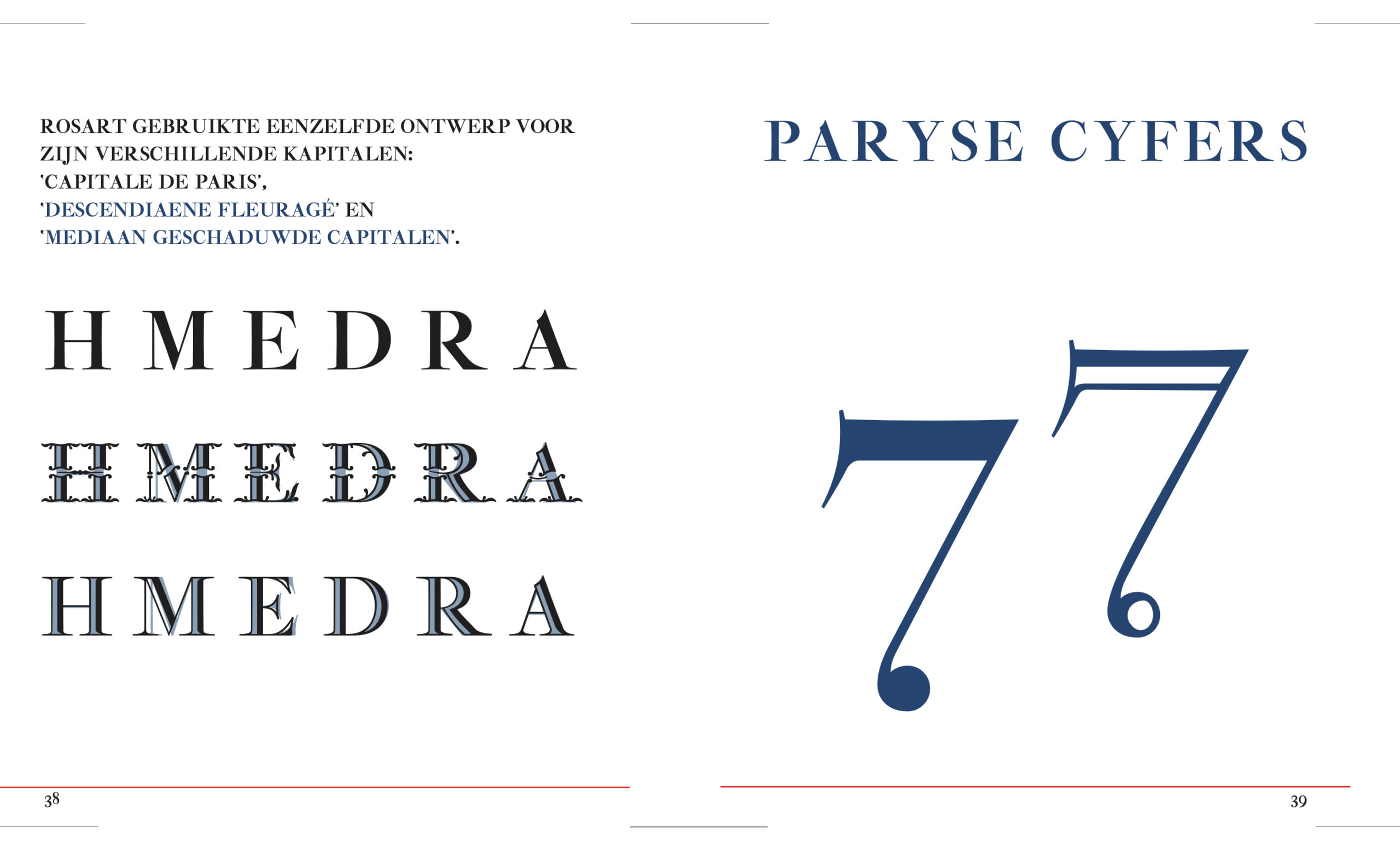 Rosart heeft enkele Versierde Kapitalen gesneden in Brussel naar voorbeelden van letters van Fournier uit Frankrijk. Deze sneed hij in 1769.