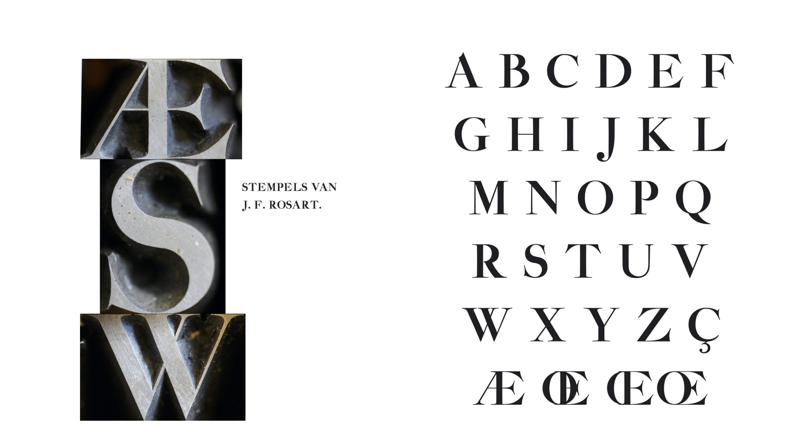 Revival naar de letterproef 1768. Rosart heeft in Brussel de letters opnieuw gesneden, nu in de nieuwe Franse stijl, zoals Didot deed.
