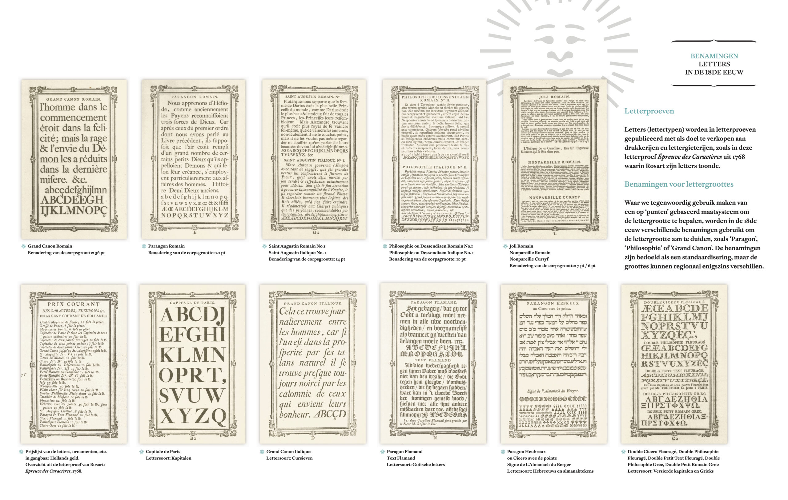Paneel met informatie over het onderzoek naar de Grand Canon van Rosart tijdens de Expert class Type design.